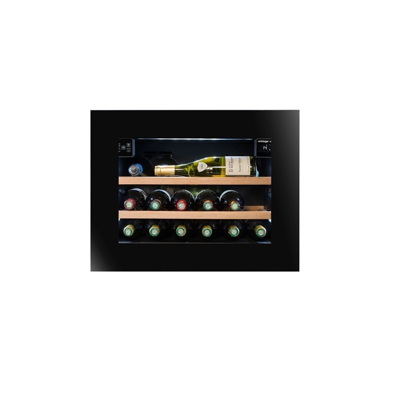 Black wine cooler for 21 bottles, designed for built-in installation in a column, low energy consumption