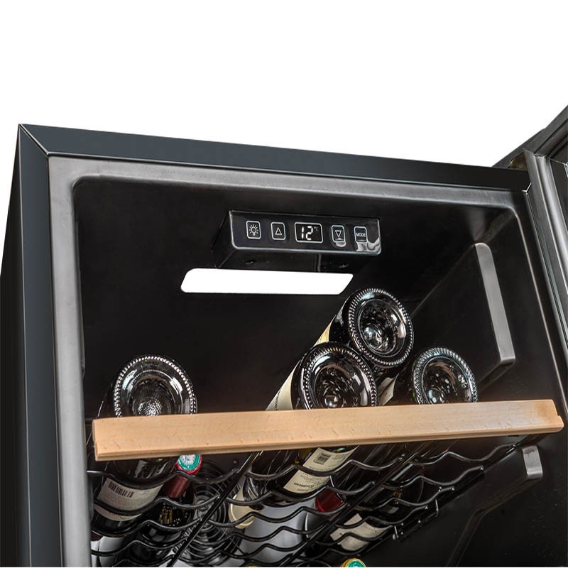 Store your wines on its steel metal shelves with natural wood fronts. Ergonomic, they are specially designed for your 75cl Bordeaux-style wine bottles. Removable, they can be adapted to your needs.