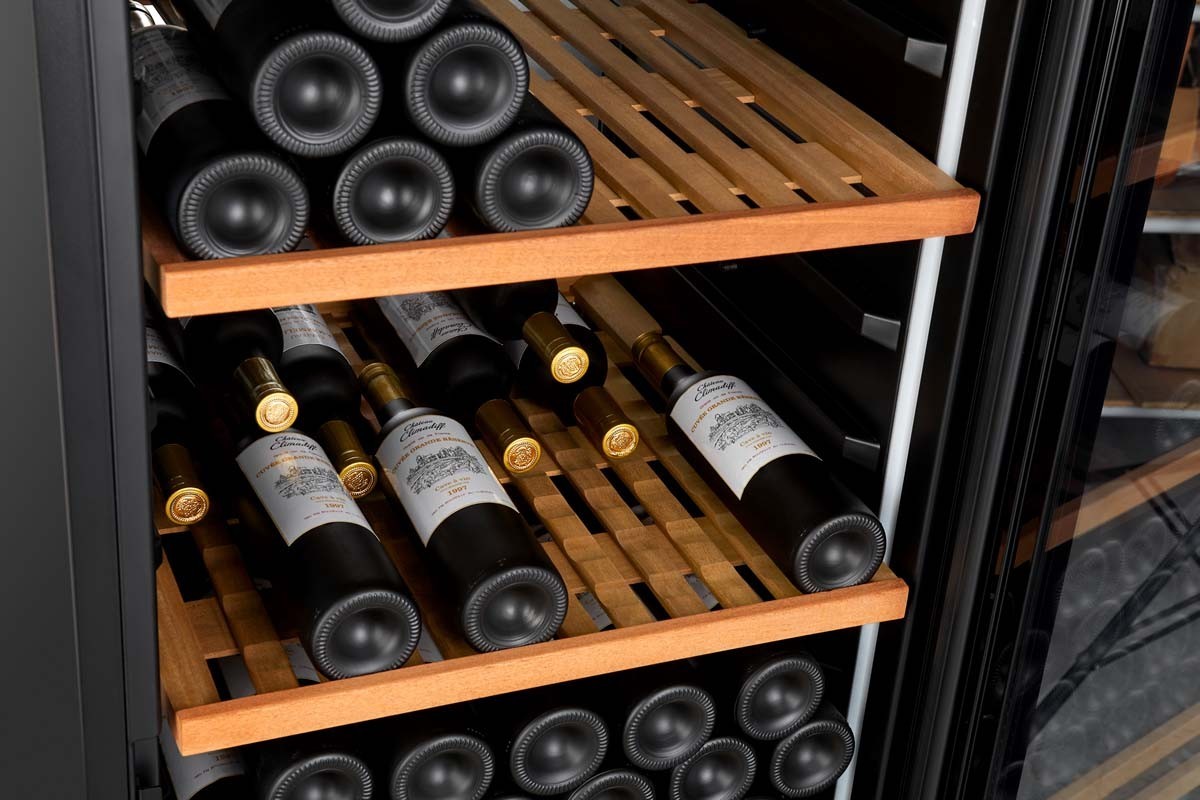 *Capacidad definida como una indicación con botellas de 75cl tipo tradición bordelesa y medida con 4 estantes. La adición de estantes reduce considerablemente la capacidad de almacenamiento.