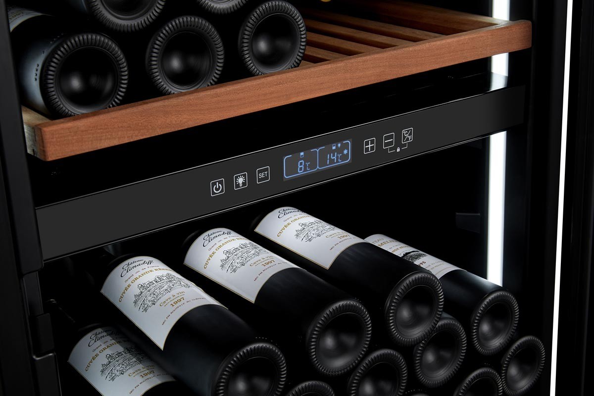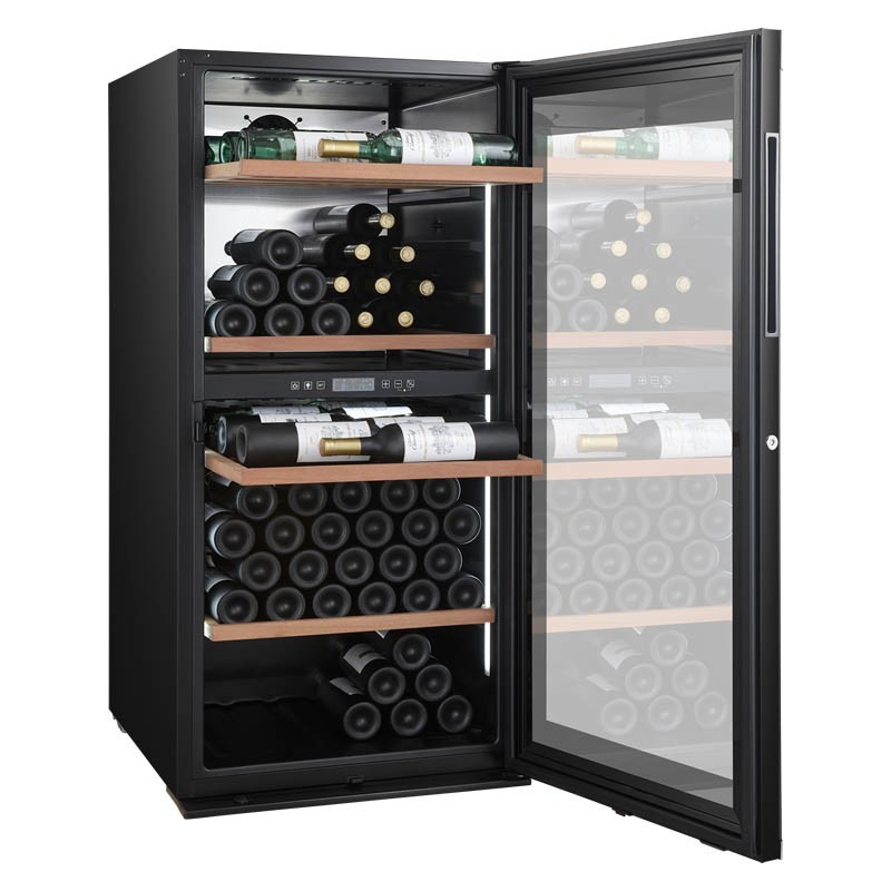 Vinoteca de conservación y envejecimiento con capacidad para 138 botellas y dos zonas de temperatura