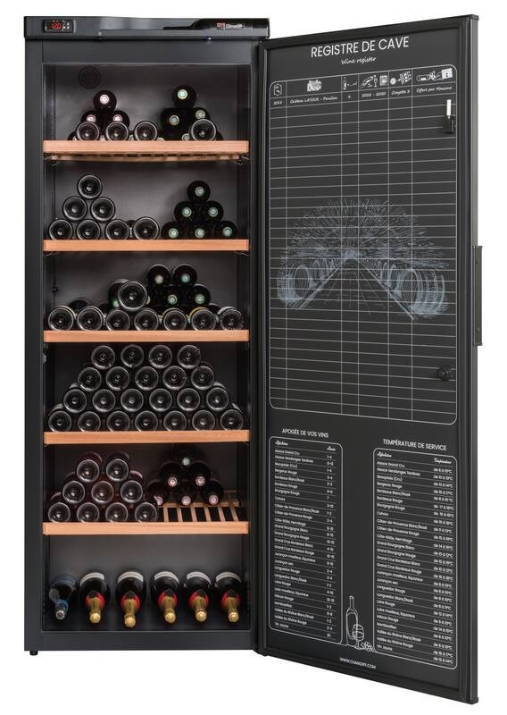 Descubra la vinoteca RESERVE300XL, una solución premium diseñada para conservar sus vinos en condiciones óptimas y similares a las de una bodega subterránea tradicional. Con una capacidad de 294 botellas*, esta vinoteca destaca por su diseño contemporáneo negro mate y su contrapuerta serigrafiada "Registro de bodega". Fabricada en Europa, combina estética y funcionalidad.