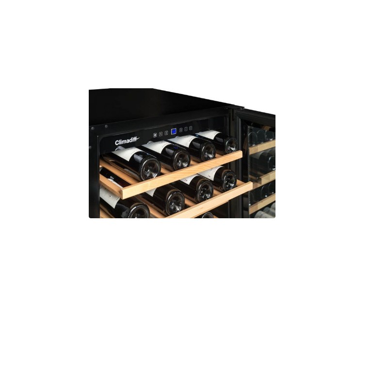 Vinoteca negra de 2 temperaturas refrigerada por compresor para 51 botellas e integrable bajo encimera de la cocina