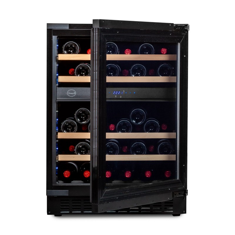 Vinoteca encastrable bajo encimera, panelable. Programable en una o dos zonas.