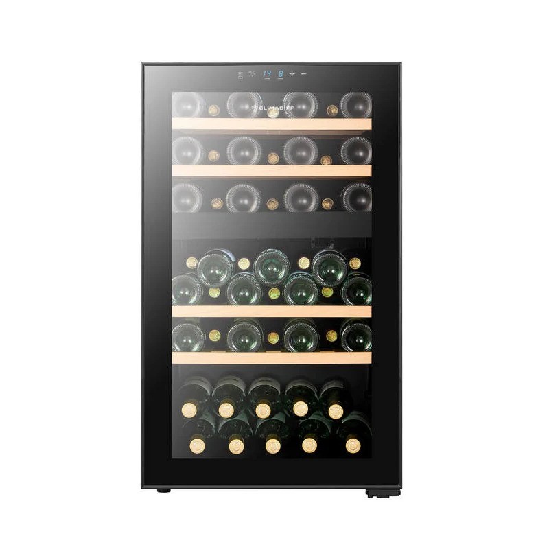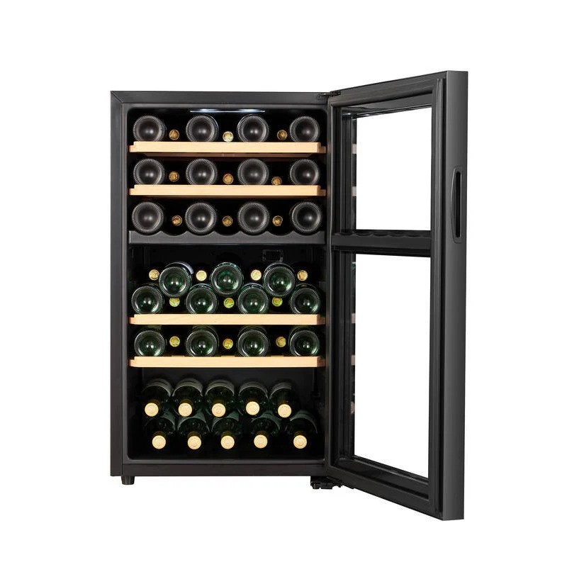 Vinoteca con dos zonas de temperatura y capacidad para 52 botellas, 21 botellas parte superior y 31 zona inferior