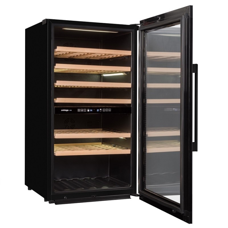 La vinoteca AVI105G2 de la marca Avintage es una cava de vinos encastrable en columna con 2 zonas de temperatura para integrar entre los muebles de columna de tu cocina. tiene unas medidasde 105 cm de alto que equivale por lo normal a (HORNO + MICROONDAS de antiguas cocinas).